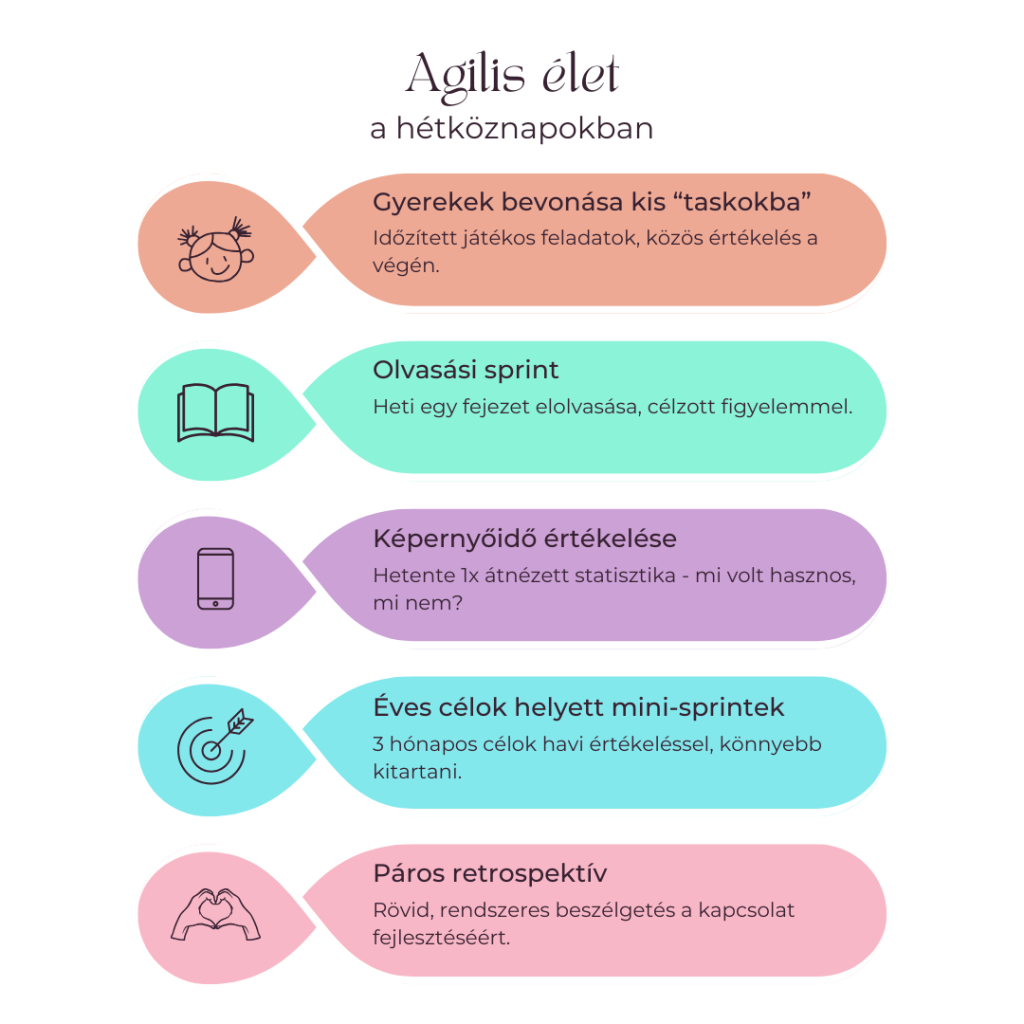 Ha olyan gondolkodásmódként tekintesz az agilitásra, amely kis lépésekben segíti a gyors tanulást, a folyamatos személyes vagy kapcsolati fejlődésed, akkor a hétköznapjaid is könnyebben mennek majd.